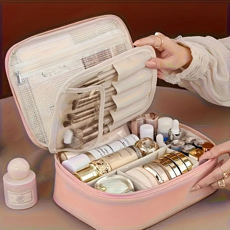 Whether you're traveling, organizing your vanity, or heading to a photoshoot, this portable makeup storage bag keeps everything in place—without compromising on style or function.