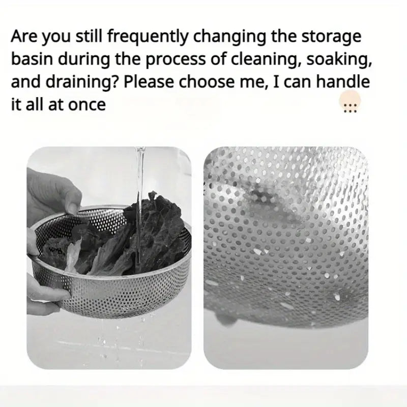 Upgrade your kitchen essentials with this premium 304 stainless steel colander, expertly designed for washing rice, vegetables, fruits, and more. Made from food-grade, rust-resistant stainless steel, this colander is built to withstand daily use while ensuring safe and hygienic food preparation.