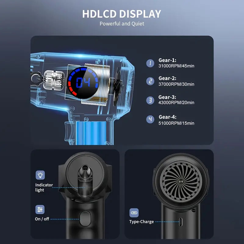 Blasts away dust and debris with up to 51,000 RPM – perfect for deep cleaning keyboards, laptops, camera lenses, car vents, and hard-to-reach places.